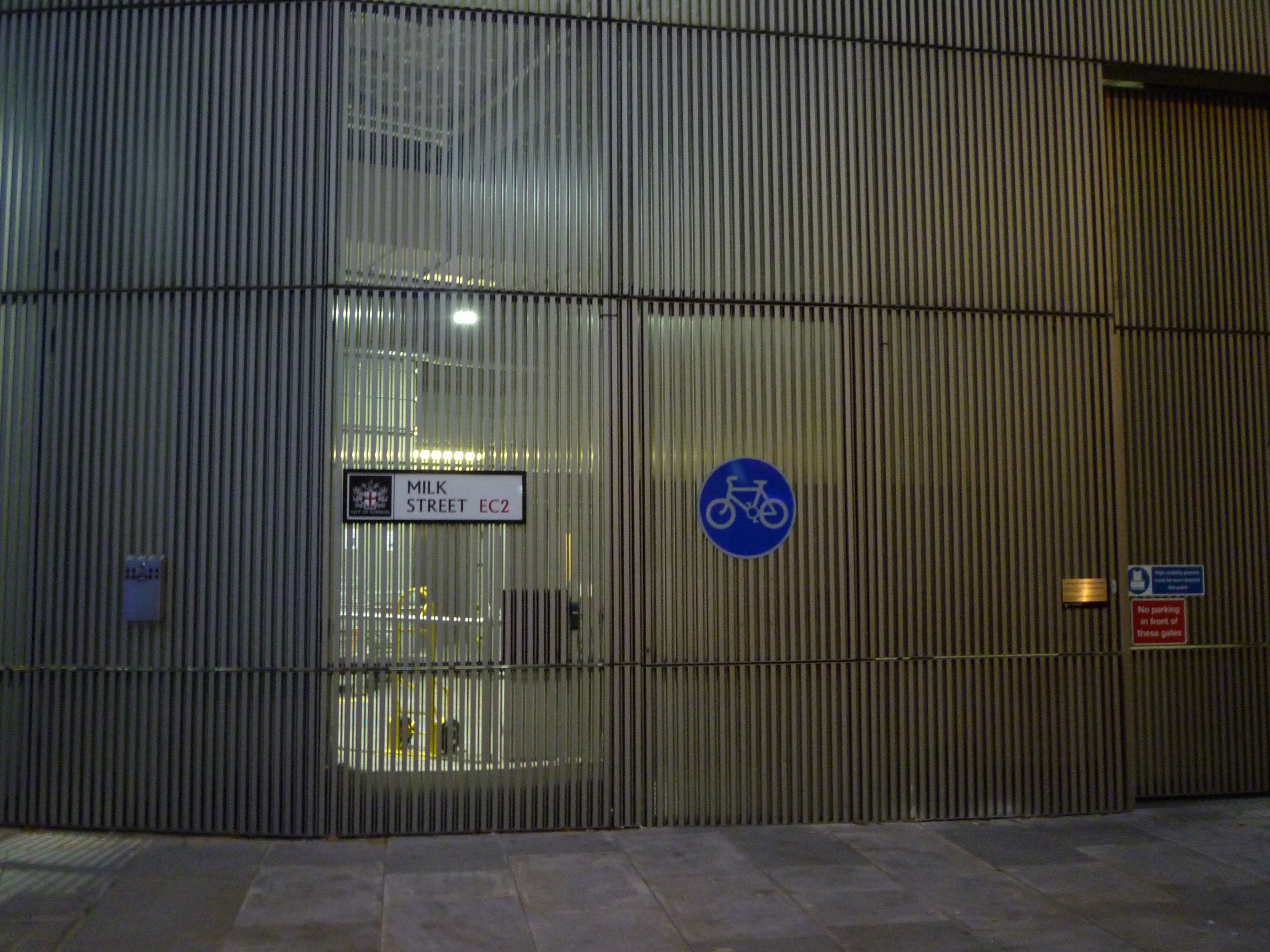 By the time we find the junction of Milk Street and Russia Row, it’s almost dark. The street layout is hundreds of years old, but the buildings are recent, sleek and polished metal and glass. Here, John Dowland’s Lachrimae (1604) has been abstracted to individual notes, broadcast separately on seven small speakers ranged along a curved façade. A calming, reflective piece; but by now, it’s too numbingly cold to linger more than a few minutes.