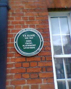 There I was, dragging about in a fog of head-cold and office blues, and suddenly I’m connected to Eliot – his ‘lonely cab-horse steams and stamps’ only a few streets away from where I earn the crust that keeps the wolf from the door. How absurdly, immeasurably my spirits were lifted by this tenuous connection. And what a comfort to be able to summon lines and phrases from his poems, to remind myself why I still want to live in London, and how writing is still at my core, a faint but still discernible pulse.