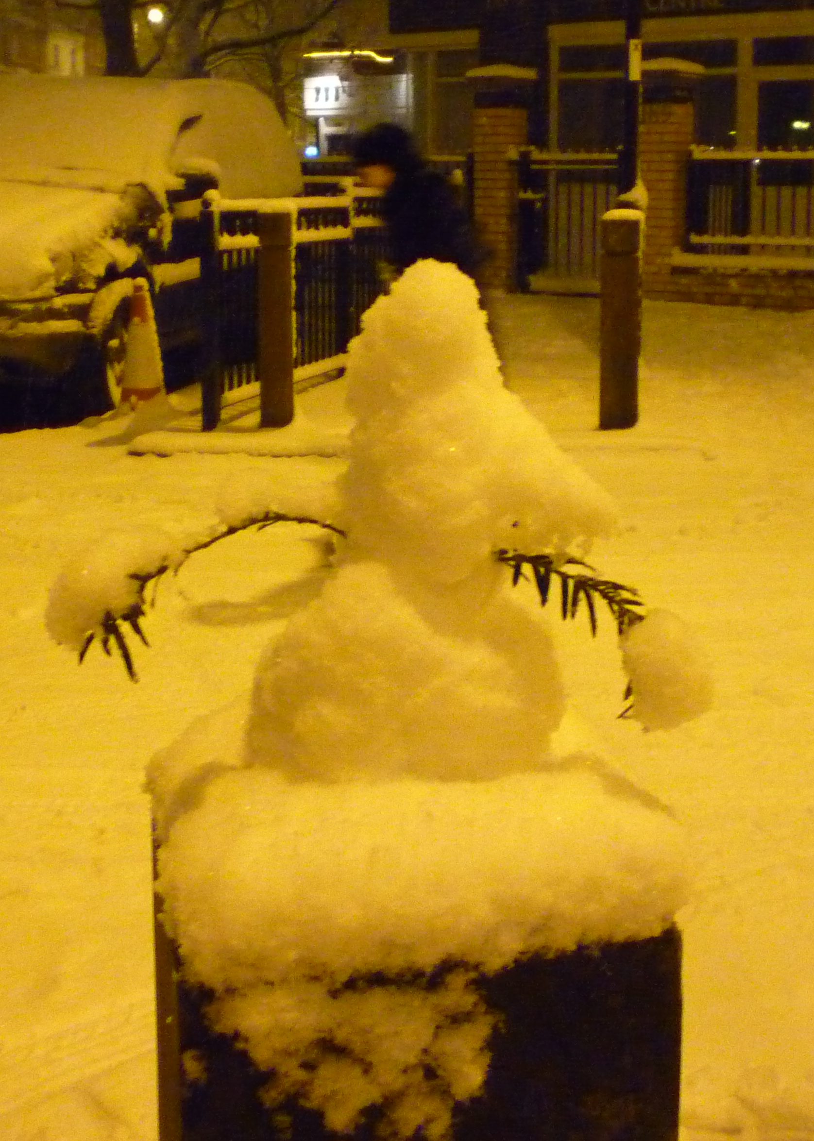 I can’t resist fresh snow. I have to be out in it, scuff through it, touch it, crump it under foot, marvel at it. I love how it transforms London – ever so briefly – into a magical new place: dazzling, crisp, quiet. Hardly any traffic, and what there is slow moving and muffled. And how it transforms Londoners, mostly for the better, allowing us to play and revel and invent all manner of snow creatures. So last night I donned my spanking new wellies and ventured out to play.