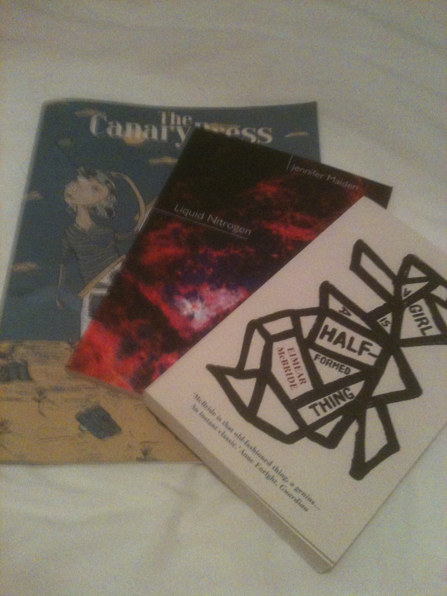 On this trip, I only visited a couple of bookshops. In the Brunswick Street Bookstore I bought issue 3 of Melbourne based story magazine The Canary Press, which I read on the flight back to London. Some great yarns accompanied by gorgeous illustrations. I also bought Liquid Nitrogen by Jennifer Maiden, which I’m very much looking forward to reading. I have a poem by Jennifer Maiden pasted onto the first page of the first journal I wrote in when I came to London. And I picked up the Text Publishing edition of A Girl is a Half-Formed Thing by Eimear McBride since I couldn’t track down a copy in London.