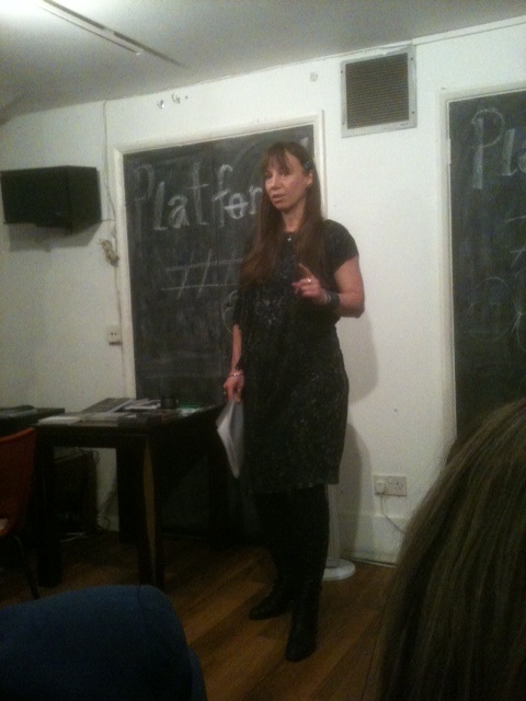 Joolz Sparkes featured in the second half, and there was more music as she treated us to a couple of songs from her former girl band days. Girl band with a large dose of Goth, that is – I loved the menacing vibe of Vampire. Joolz also read a selection of poems from her in-progress collection Love Songs to London, Sick Notes to Oz. Her muse is London, in all its variety and sordidness and splendour, and this shines through in poems such as We live here and the magnificent Congregation kneels. She finished, fittingly, with Epitaph, a poem that never fails to send a shiver down my spine. A strong voice, great presence, meaty material. Reminded me why I live in – LOVE – London. And as well as these two talented writers, the open mic spots at the beginning of each half once again showed how many amazing women writers there are in this metropolis – and beyond.