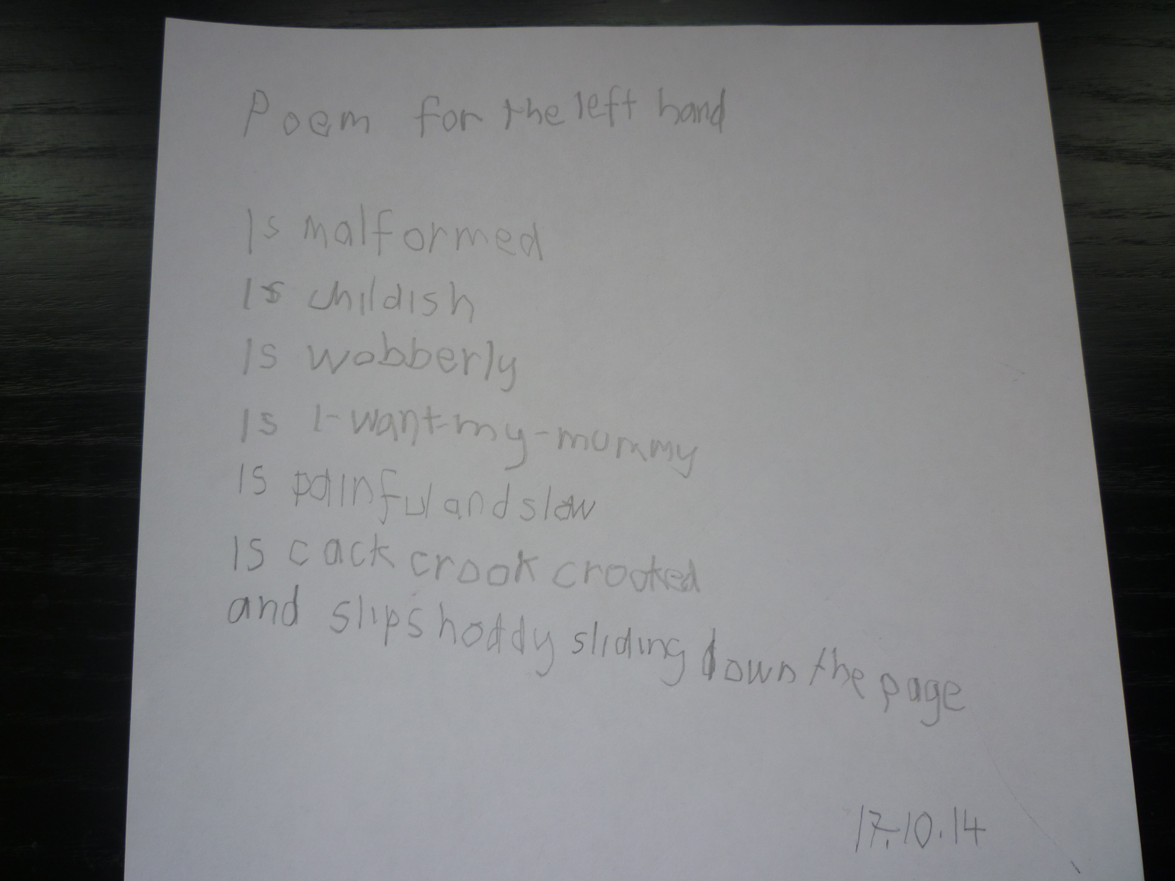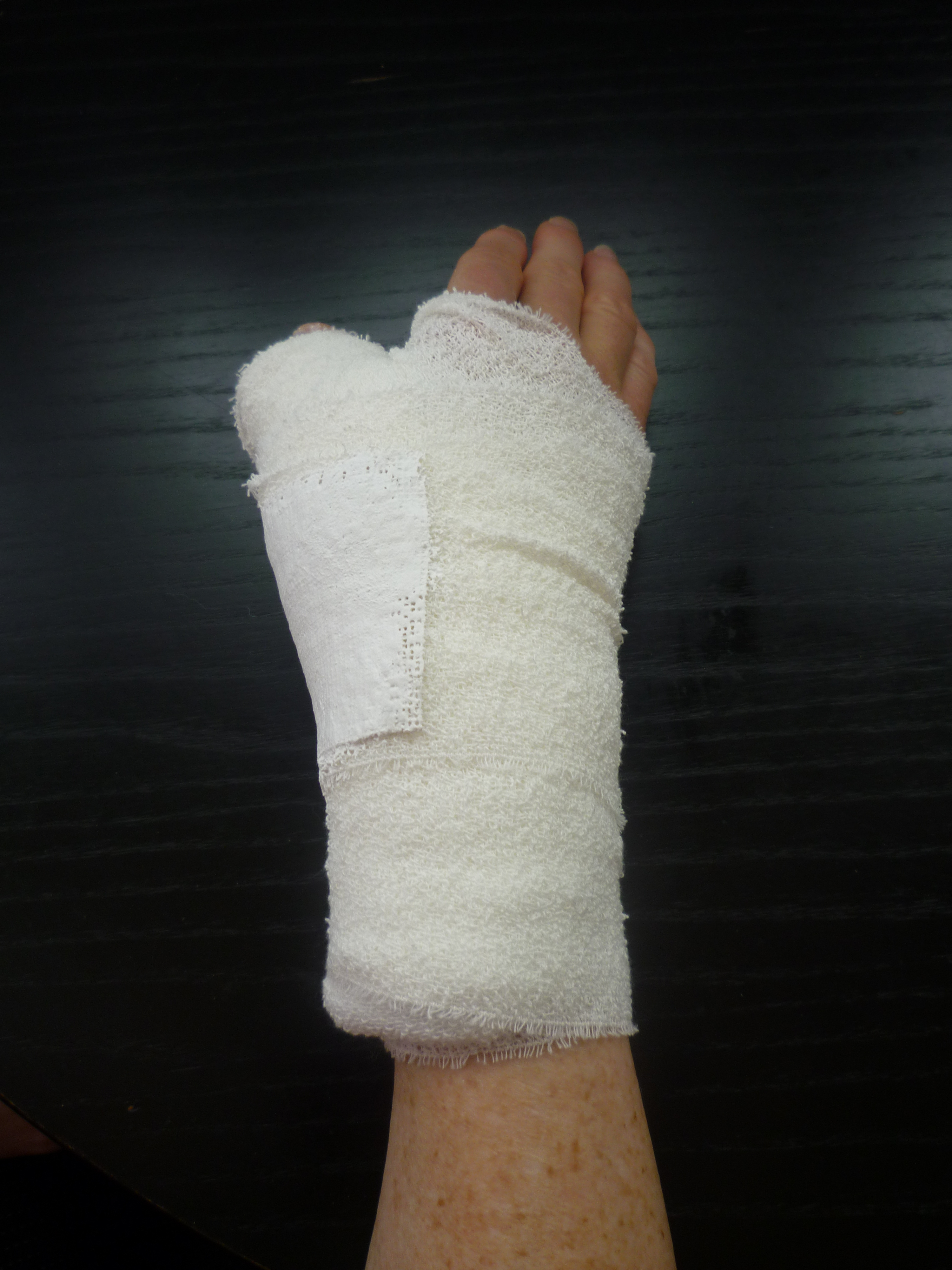 I empathise! Having broken my left (dominant) thumb in Junior school I had to write right-handed for a month – almost as painful as the afflicted digit. Hope yours is soon healed.