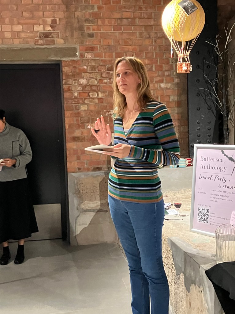 The launch on Wednesday was a truly joyous affair. Dozens of people attended, including quite a few members of Battersea Power Station Community Choir, to which Priscilla belongs. Priscilla proved to be a witty and skilful MC, introducing each reader in turn, with the journal’s foreword writer, stellar poet Rishi Dastidar, up first. Rishi writes in his foreword of Battersea and Nine Elms being ‘an ever-changing place, a perfect place in which to remake yourself and your life’, and how this spirit shines through in the pieces included in the journal. It certainly rings true of my experience of moving to Battersea all those years ago, and how I have changed almost as much as the area has over those years.